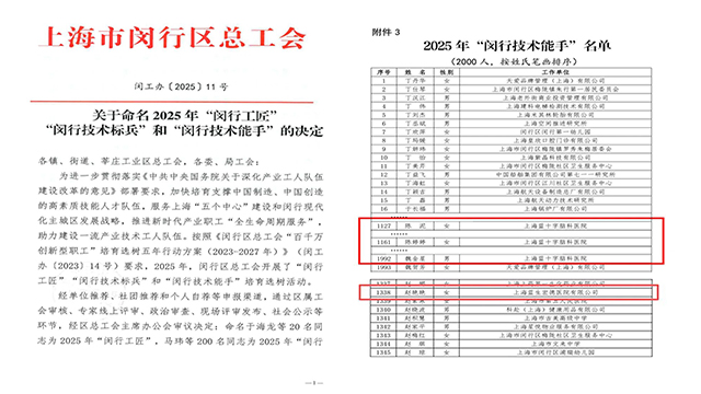 • 公司医院4名医护人员荣获“闵行技术能手” 称号